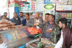 من جانبهم حث نائب مدير مكتب الصناعة لشؤون التجارة محمد اليازلي ومديرا إدارتي استقرار الأسواق ناشر عمران والمخابز عبدالملك الشامي، التجار وملاك الأفران على الإلتزام بالبيع بالكيلو بسعر 500 ريال للكيلو الواحد من الرغيف والروتي