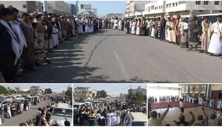وقفات احتجاجية بمديريات محافظة الحديدة تندد بجرائم أمريكا