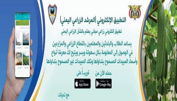 تدشن وزارة الزراعة والري غداً الاثنين خدمة الإرشاد الزراعي الإلكتروني، عبر تطبيق المرشد الزراعي اليمني.