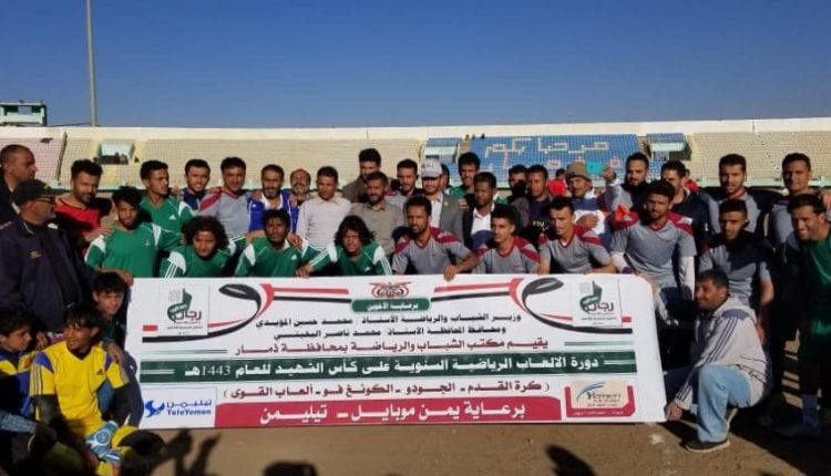دشن محافظ ذمار محمد ناصر البخيتي عصر اليوم فعاليات دورة الألعاب الرياضية السنوية على كأس الشهيد والتي ينظمها مكتب الشباب بمحافظة ذمار تحت شعار شهداؤنا عظماؤنا والتي تشمل بطولات ( كرة القدم والجودو والكونغ فو والعاب القوى )