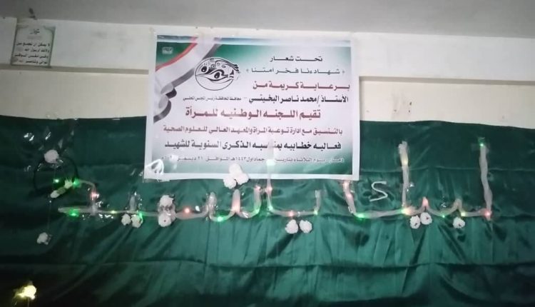 تحت شعار “شهداؤنا فخر أمتنا”، نظم فرع اللجنة الوطنية للمرأة بذمار، بالتنسيق مع إدارة توعية المرأة والمعهد العالي للعلوم الصحية بالمحافظة، اليوم، فعالية خطابية بمناسبة الذكرى السنوية للشهيد.