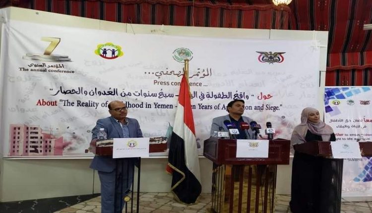 عقد مؤتمر صحفي في العاصمة صنعاء، اليوم الاثنين، حول (واقع الطفولة في اليمن.. 7 سنوات من العدوان والحصار)، نظمته هيئة التنسيق للمنظمات اليمنية غير الحكومية لرعاية حقوق الطفل.