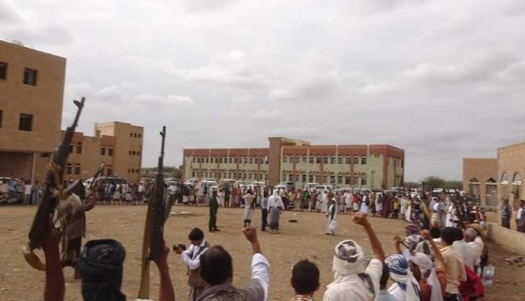وندد المشاركون باستهداف طيران العدوان لساحة الجمرك في مديرية السوادية التابع لمركز جمرك عفار بمحافظة البيضاء.