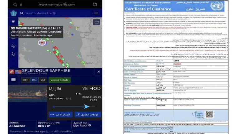 وقال المتحدث الرسمي لشركة النفط اليمنية عصام يحيى المتوكل في تغريدة على تويتر إن: تحالف العدوان الأمريكي السعودي يحتجز في المياة الدولية السفينة “سبلندور سفاير” “SPLENDOUR SAPPHIRE”التابعة لمصانع القطاع الخاص والتي تحمل كمية (24,189 طن) من مادة المازوت”.