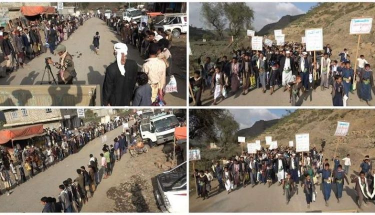 حجة.. وقفة حاشدة بمديرية الشاهل استنكارا لجرائم العدوان والتصعيد العسكري والحصار