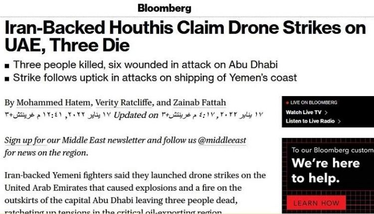بلومبيرغ تكشف عن قلق بالغ في أبوظبي عقب الهجوم الجوي للقوات اليمنية