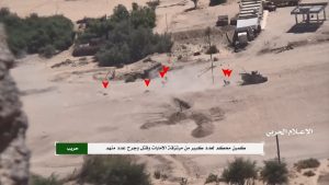 وكشفت المشاهد عملية تدمير عدد كبير من المدرعات والأليات المحملة بالمرتزقة بالصواريخ الموجهة وقذائف الأر بي جي بيد مجاهدي الجيش واللجان الشعبية الذين تعاملوا بكل حرفية مع تحركات قوى الارتزاق.