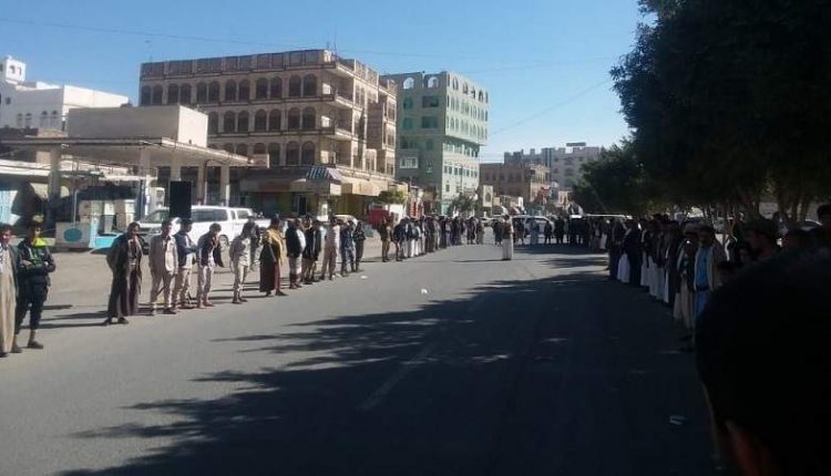 نظم أبناء حيي حمير وشيراتون بمديرية شعوب بالعاصمة صنعاء اليوم الاثنين، وقفة احتجاجية استنكاراً ورفضاً لتصعيد وحصار العدوان الأمريكي السعودي الإماراتي.