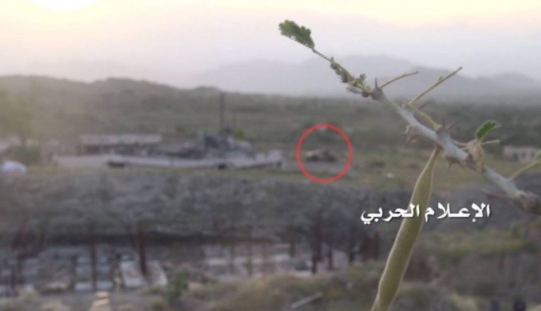 وفي ذات السياق، وزَّع الاعلام الحربي مشاهد لإعطاب مدرعة سعودية من نوع برادلي يوم أمس في موقع الفريضة بجيزان.