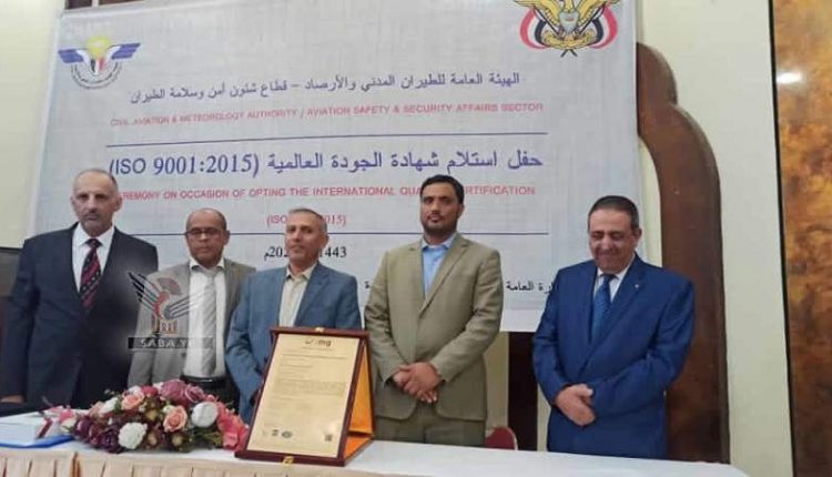وقال عبدالقادر: “إن الحصول على شهادة الايزو العالمية مكسباً كبيراً للجمهورية اليمنية في وجه العدوان الذي يدّعي كذبا وزورا عدم الجاهزية الفنية والتشغيلية في مجال الملاحة الجوية والطيران المدني”.