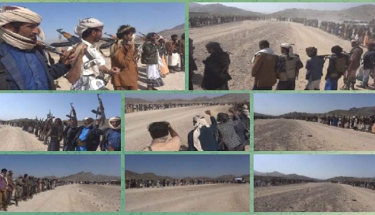 نظمت قبائل مراد وبني ضبيان وقيفة بمديرية رحبة بمحافظة مأرب اليوم الاثنين، وقفة قبلية مسلحة للحشد والنفير لمواجهة العدوان استجابة لحملة إعصار اليمن.
