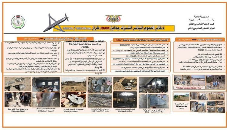 وكان المركز التنفيذي للتعامل مع الألغام كشف في تقرير سابق عن بعض الأماكن التي تم استخدام هذا النوع من القنابل فيها وتوثيق استخدام قنابل جدام في اليمن خلال الفترة من 29 مارس 2015 حتى العام 2022م من خلال استهداف وقصف الأعيان المدنية بالقنبلة /GBU-31 JDAM.