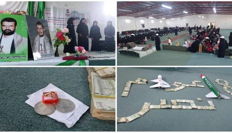 وخلال الفعالية قدمت حرائر عزلة الشرقي ووادي الفروات بسنحان قافلة مالية احتوت على مبلغ مليون و800 ألف ريال بالإضافة إلى حلي ذهبية وفضية دعما للقوة الصاروخية والطيران المسير.