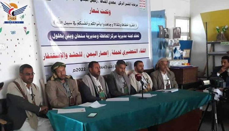 دشنت في مديرتي سنحان وبني بهلول ومركز محافظة صنعاء، اليوم الخميس، حملة إعصار اليمن للحشد والاستنفار للجبهات تلبية لدعوة رئيس المجلس السياسي الأعلى.