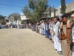 نفذ أبناء مديرية المنار وقفة مسلحة استنكارا وتنديدا بالجرائم النكراء والحصار المطبق ومنع دخول المشتقات النفطية وتحت عنوان “حصار المشتقات النفطية قرار امريكي”.