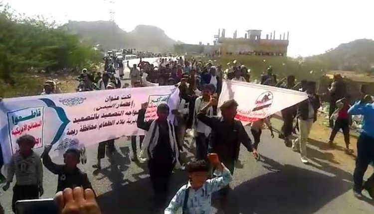 ريمة.. مسيرة ووقفة في بلاد الطعام رفضا للحصار وجرائم العدوان