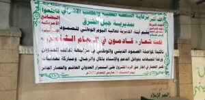 نظم عصر اليوم أبناء مديرية جبل الشرق فعالية خطابية حاشدة بمناسبة اليوم الوطني للصمود تحت شعار “قادمون في العام الثامن” تأكيداً للتمسك بخيار الصمود والثبات في مواجهة قوى الغزو والإحتلال والعمالة والإرتزاق .