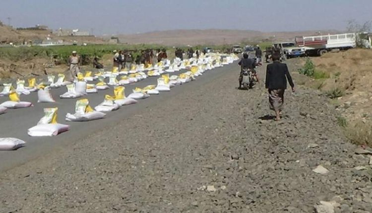 سير أبناء الحيوف في مديرية بني حشيش محافظة صنعاء، اليوم الجمعة قافلة غذائية بقيمة 20 مليون ريال للمرابطين في الجبهات تدشيناً للعام الثامن من الصمود في وجه العدوان.