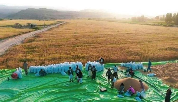 تدشين موسم الحصاد الشتوي للقمح بمزرعة الشهيد الصماد في الجوف