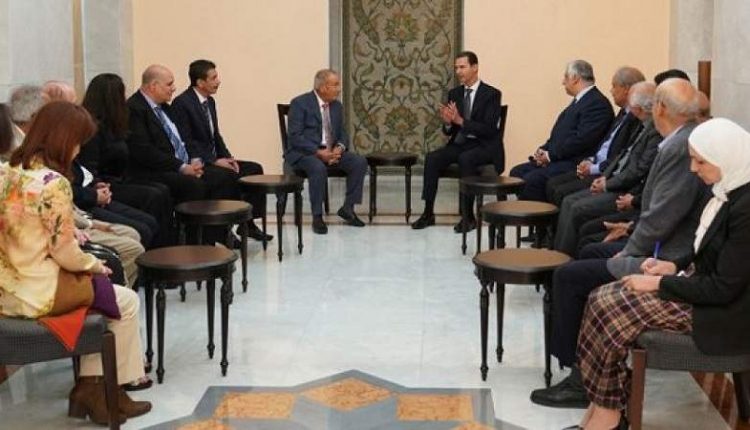 التقى الرئيس السوري بشار الأسد اليوم الاثنين، أعضاء الأمانة العامة لاتحاد الجاليات والمؤسسات والفعاليات الفلسطينية في الشتات-أوروبا والذي عقد مؤتمره العام الخامس في دمشق.