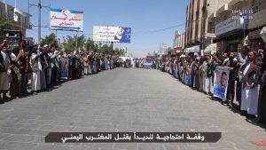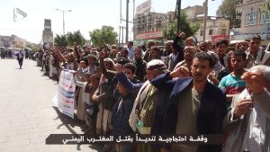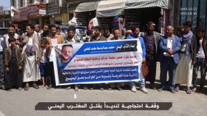 وندد بيان صدر عن الوقفة تلاه مدير مكتب حقوق الإنسان بالمحافظة محمد الماوري، بهذه الجريمة التي ارتكبها النظام السعودي، مؤكدا أنه سيتم مقاضاة النظام السعودي طال الزمن أو قصر.