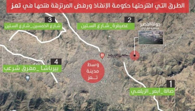 لماذا يرفض التحالف ومرتزقة تعز طرقاً تختصر معاناة 5 ساعات الى دقائق .. حكومة الإنقاذ تجيب ؟! ..