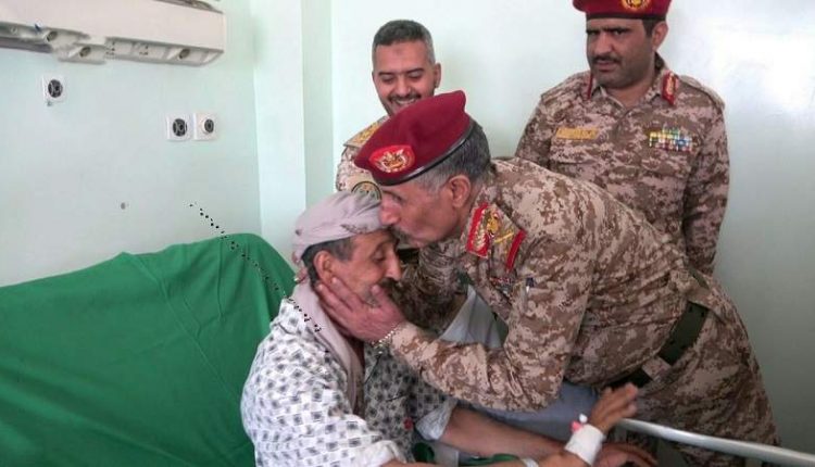 اللواء الركن الموشكي يزور الجرحى في المستشفى العسكري بصنعاء