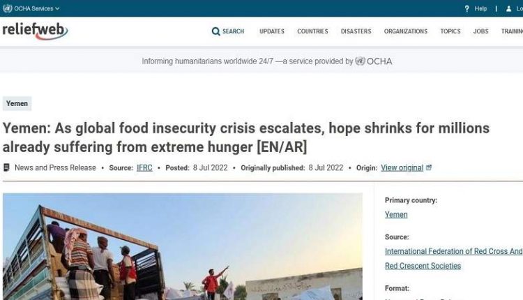 “ريليف ويب”: قرابة 16.2 مليون يمني يعانون انعدام الأمن الغذائي