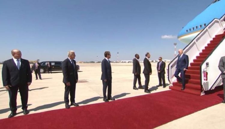 وكان في استقبال بايدن كل من رئيس حكومة تصريف الأعمال للعدو الصهيوني يائير لابيد، ورئيس الكيان يتسحاق هرتسوغ، ورئيس الحكومة السابق نفتالي بينيت.
