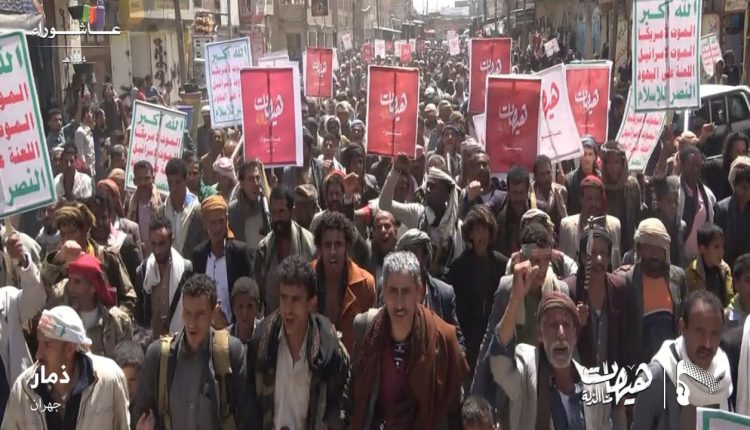 مسيرة جماهيرية حاشدة لأبناء مديريتي جهران والحداء بذمار إحياء لذكرى عاشوراء ونصرة للشعب الفلسطيني