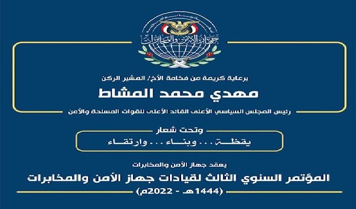 عقد جهاز الأمن والمخابرات مؤتمره السنوي الثالث لقيادات الجهاز للعام ١٤٤٤هـ – ٢٠٢٢م، تحت شعار “يقظة.. وبناء .. وارتقاء”.