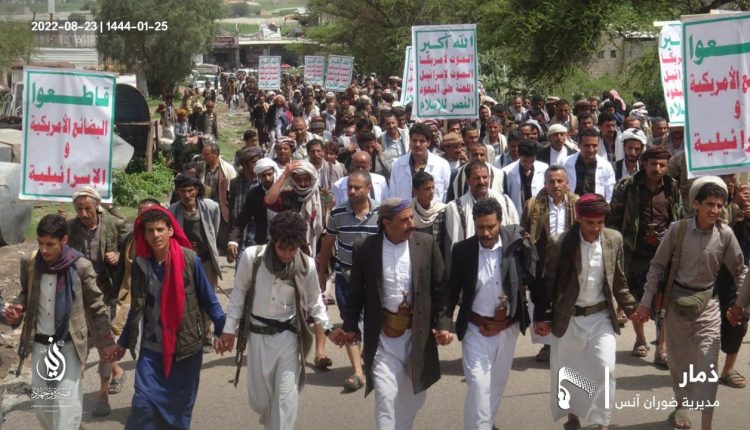 مسيرة جماهيرية حاشدة في مديرية ضوران آنس بذمار، إحياءً لذكرى استشهاد الإمام زيد بن علي عليه السلام.
