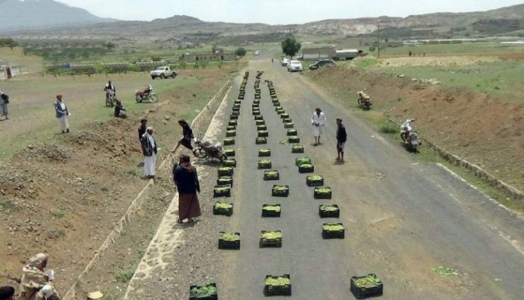 سيّر أبناء عزلة الشرفة في مديرية بني حشيش محافظة صنعاء، اليوم الجمعة، قافلة عنب مكونة من 100 سلة للمرابطين في الجبهات.