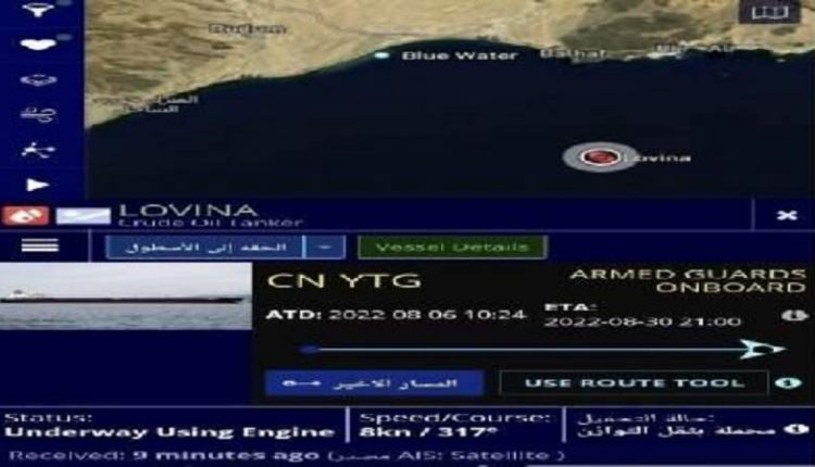 وأظهرت البيانات وصول السفينة “لوفينا” اليوم الثلاثاء، إلى ميناء النشيمة بمحافظة شبوة قادمة من ميناء “يانتاي” الصيني لنهب مايقارب مليون برميل من النفط الخام اليمني.