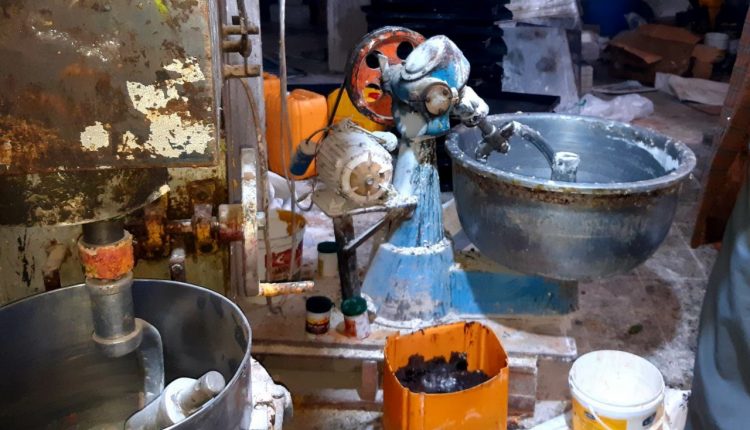 وأوضح مدير مكتب الصناعة، المهندس هاشم إبراهيم الوريث، أن المعمل يقع في بدروم أرضي مكشوف الأبواب والنوافذ يستخدم أدوات منتهية الصلاحية، وتتراكم بداخله مواد منتهية، ومخلفات ونفايات.