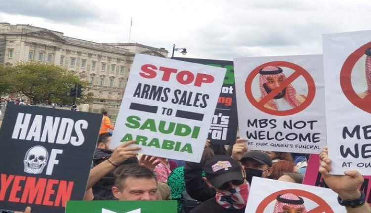 شهدت العاصمة البريطانية لندن تظاهرة حاشدة، اليوم الأحد، ضد الزيارة المقررة لبن سلمان إلى لندن من أجل تقديم العزاء في الملكة إليزابيث الثانية.