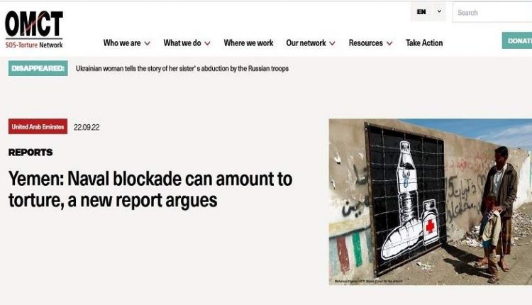 التقرير الصادر عن المنظمة العالمية لمناهضة التعذيب (OMCT) بعنوان “التعذيب في حركة بطيئة”، أوضح أن الحصار البحري المفروض على اليمن من قبل التحالف الذي تقوده السعودية ساهم بشكل كبير في دفع المدنيين اليمنيين إلى المجاعة ويمكن اعتباره تعذيباً.