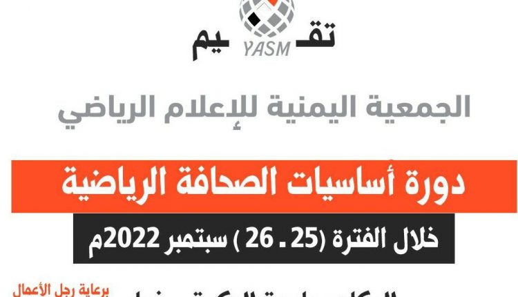 تحتضن قاعة جامعة الحكمة بذمار يوم غد الاثنين فعاليات الدورة التدريبية لأساسيات الصحافة الرياضية التي تنظمها الجمعية اليمنية للاعلام الرياضي بمشاركة 46 من الكوادر الإعلامية العاملة في القطاعين الرسمي والخاص.