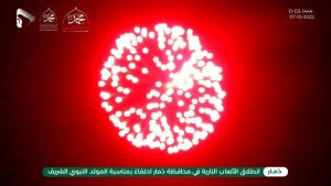 وشكلت الألعاب النارية التي من الشوارع وأسطح المنازل والمرتفعات، لوحة جمالية ومشهدا بديعا عبر عن مظاهر الفرحة والبهجة التي تغمر أبناء الشعب اليمني بحلول ذكرى المولد النبوي الشريف.