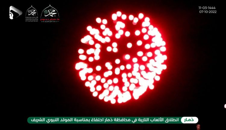 أضاءت الألعاب النارية مساء اليوم الجمعة سماء محافظة ذمار ابتهاجا بحلول ذكرى المولد النبوي الشريف.