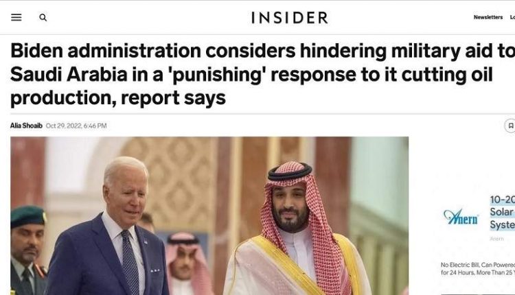كشف موقع أمريكي عن توجه جديد للإدارة الأمريكية بإلغاء المساعدات العسكرية الموعودة للسعودية، كرد “عقابي” على قرار خفض إنتاج النفط.