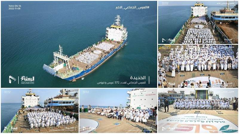 على متن سفينة (روابي) الإماراتية.. الحديدة تحتفي بزفاف 572 عريساً وعروس