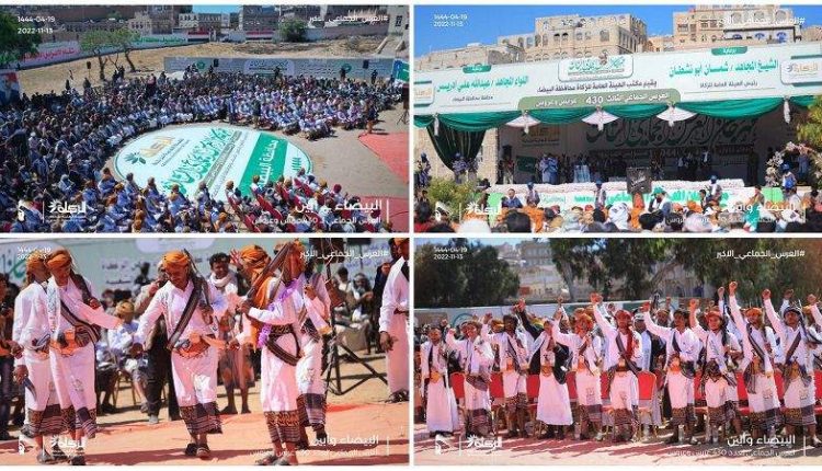 نظم مكتب الهيئة العامة للزكاة بمحافظة البيضاء اليوم الأحد، العرس الجماعي الثالث لـ430 عريساً وعروساً من أبناء الشهداء والجرحى والأسرى المحررين والأيتام والمحتاجين وأحفاد بلال من محافظتي البيضاء وأبين.