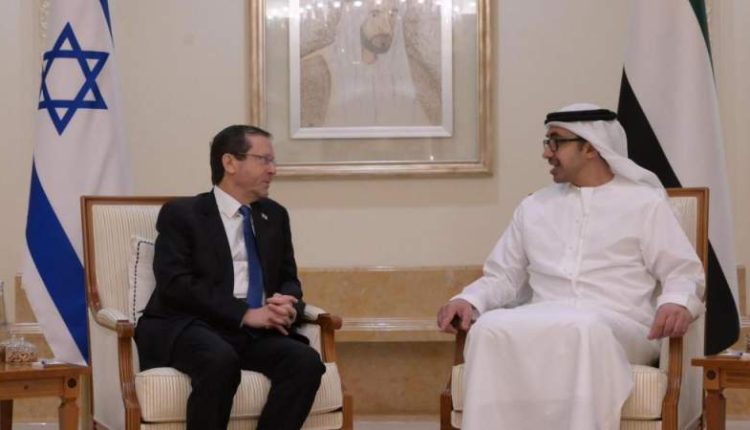 ووفق وسائل إعلام فقد كان في استقبال هرتسوغ وزير خارجية الإمارات عبد الله بن زايد.