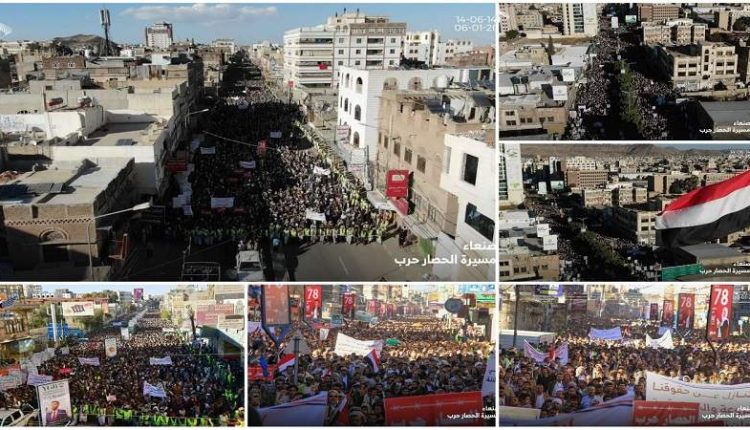 العاصمة صنعاء تشهد مسيرة جماهيرية كبرى تحت شعار “الحصار حرب”