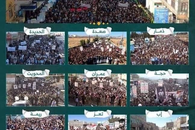 فيما كانت الرسالة القوية بالغة التأثير في خروج الحشود الجماهيرية اليمنية بمسيرات مليونية في العاصمة صنعاء ومختلف المحافظات، تحت شعار (الحصار حرب)، للتنديد باستمرار “العدوان والحصار الأمريكي السعودي الإماراتي”، والتأكيد على استمرار وقوف أبناء الشعب اليمني إلى جانب القيادة الثورية والمجلس السياسي الأعلى لاتخاذ ما يلزم لردع العدوان، وما تراه مناسباً من خيارات لرفع الحصار.