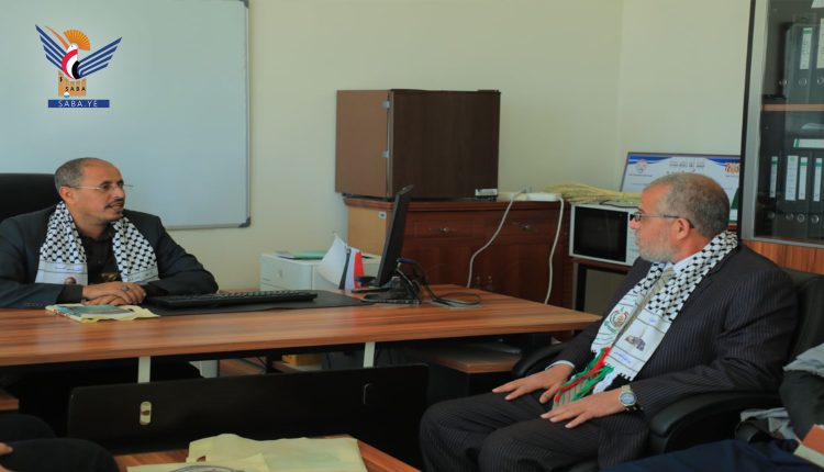 وأكد الحرص على رفع مستوى التنسيق الإعلامي فيما يتعلق بالقضية الفلسطينية من خلال التواصل والارتباط مع وسائل الإعلام الوطنية واستضافة ممثلي حركات المقاومة الفلسطينية في اليمن لاطلاع الرأي العام بما يحدث في فلسطين من انتهاكات وجرائم يندى لها الجبين.