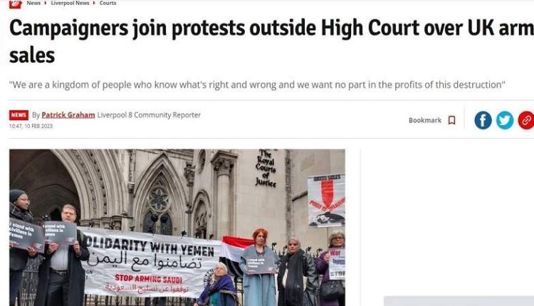 وبحسب صحيفة “ليفربول إيكو” البريطانية، فإن منطقة الاحتجاجات شهدت انضمام نشطاء من الجالية اليمنية إلى الاحتجاجات خارج المحكمة العليا في لندن على بيع الحكومة البريطانية أسلحة إلى السعودية.