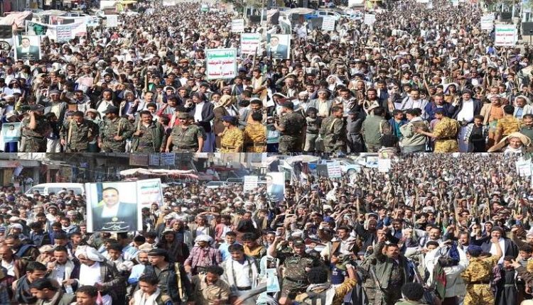 ورفع المشاركون بالمسيرة الشعارات المنددة بإعداء الامة الاسلامية وإستمرار العدوان في مماطلة الشعب اليمني في رفع الحصار عن موانئ ومطارات بلادنا، داعين الى إخراج القوات الأجنبية من الاراضي اليمنية، والتضامن مع القضية الفلسطينية واستنكاراً لما يقوم به الصهاينة بحق القدس والاقصى.