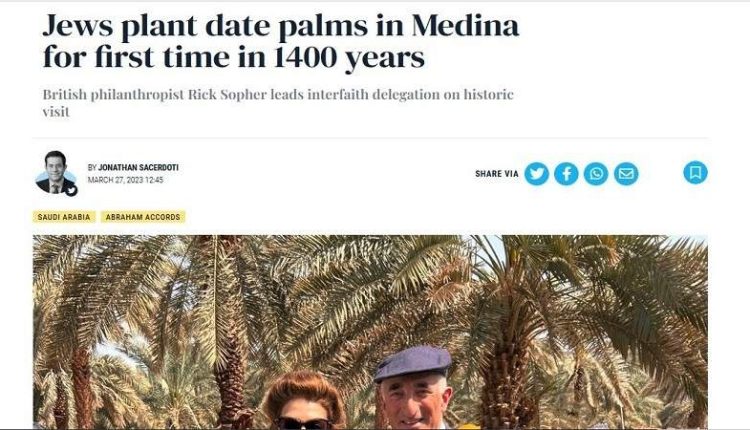 وأوضحت الصحيفة أن “اليهودي البريطاني Rick Sopher؛ هو من ترأس الوفد اليهودي الذي قام بالزيارة التاريخية للمدينة المنورة، حيث قام كل فرد مشارك؛ بزراعة فسيلة من العجوة، وهو النوع المتخصص من التمر الذي يُزرع فقط في المدينة المنورة”.